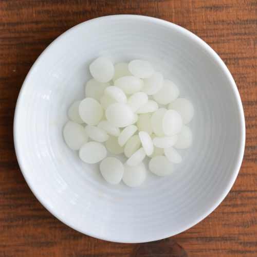 Refined beeswax (bead wax/beeswax) is natural wax obtained from honeycomb, and serves as a key ingredient for making ointments and lip balms. It helps to keep the skin moist and soft. When making ointments or lip balms, it should be melted using a water bath. This is a refined type (white) with the color and scent removed.