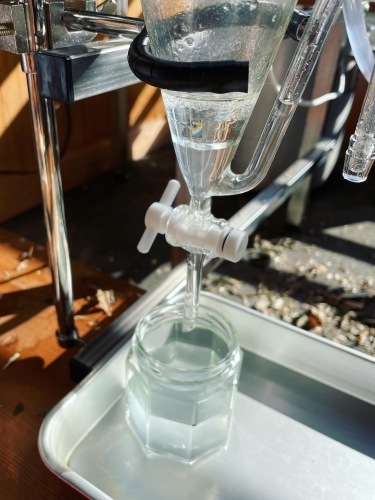 Our 100% natural Kuromoji water is transparent, rich, and full-bodied, offering a refreshing citrus aroma with a subtle sweetness lingering in the air. During the steam distillation of Kuromoji branches and stems to extract essential oil, a byproduct containing water-soluble aromatic components is produced. This is the aromatic distillate water.