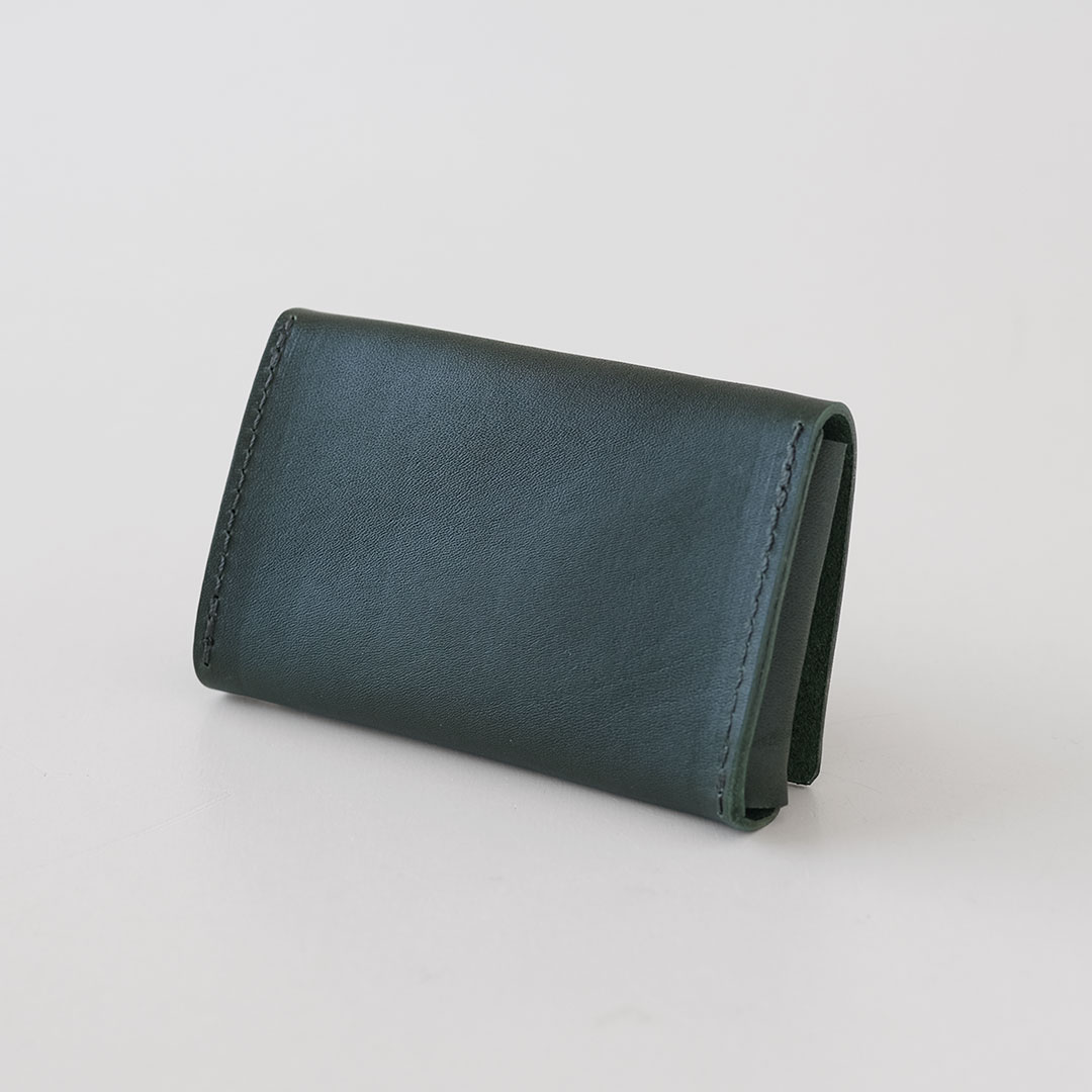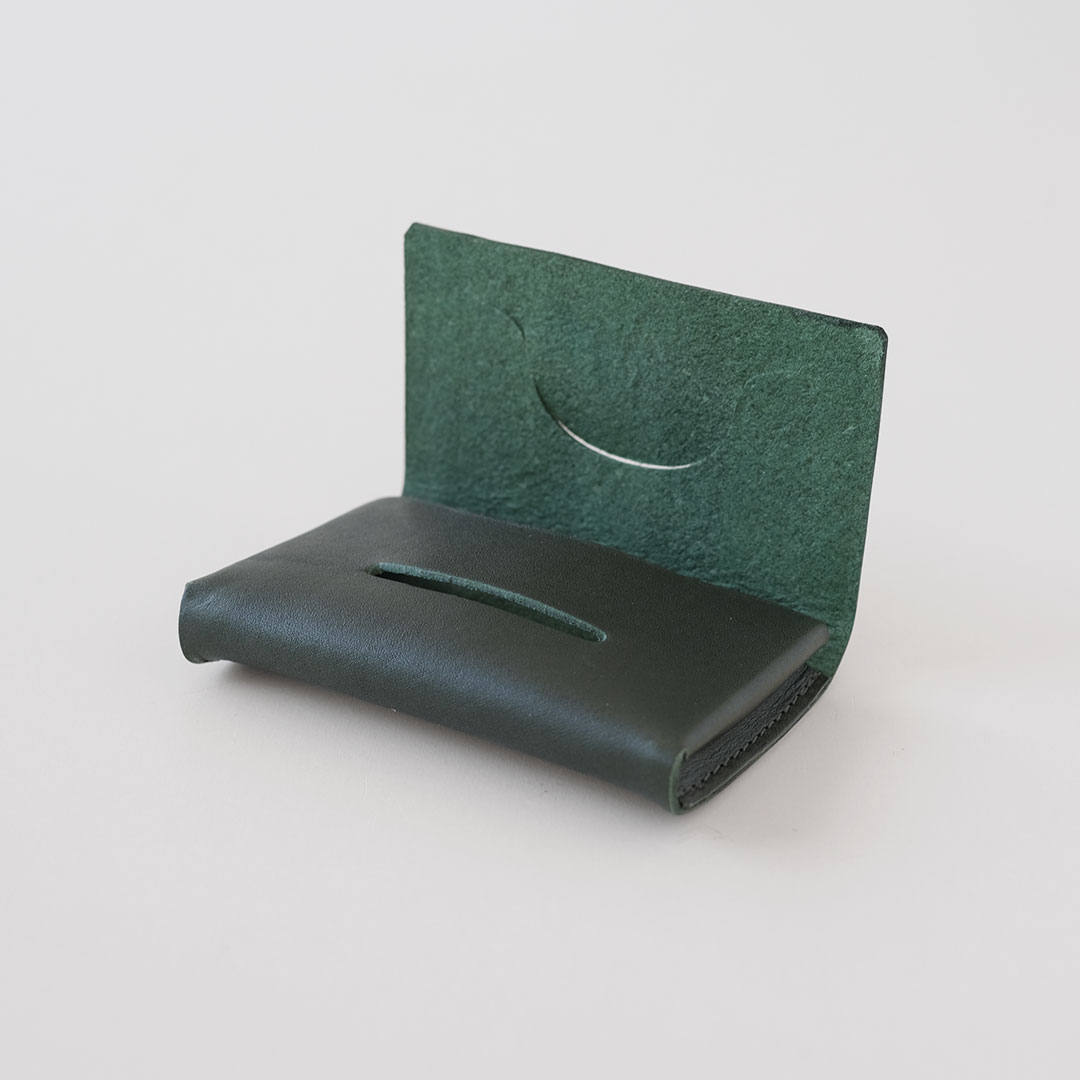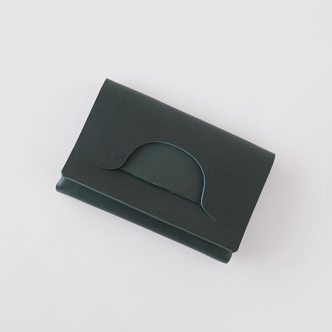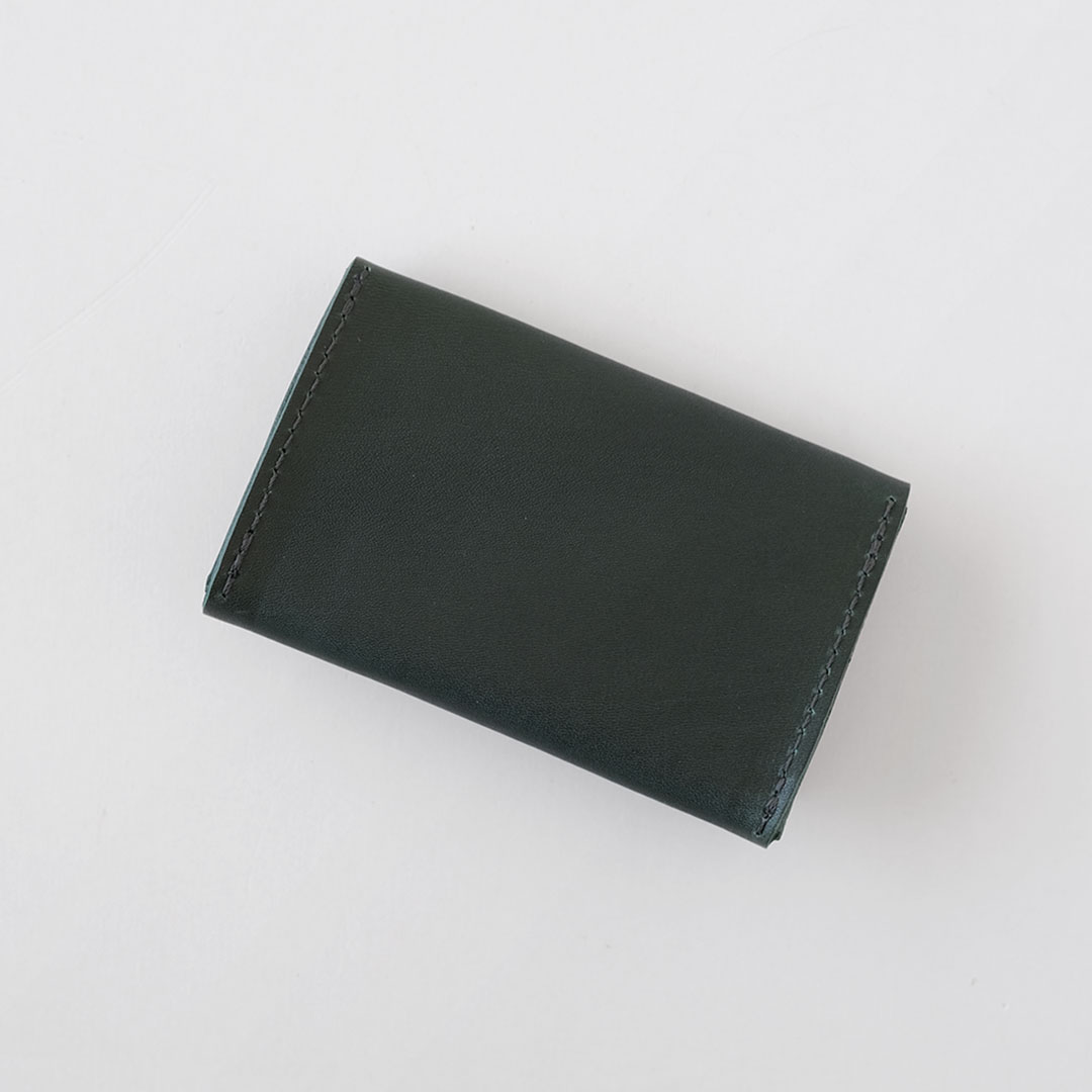 This business card holder is made from a single piece of leather, crafted in a three-dimensional yet simple manner.