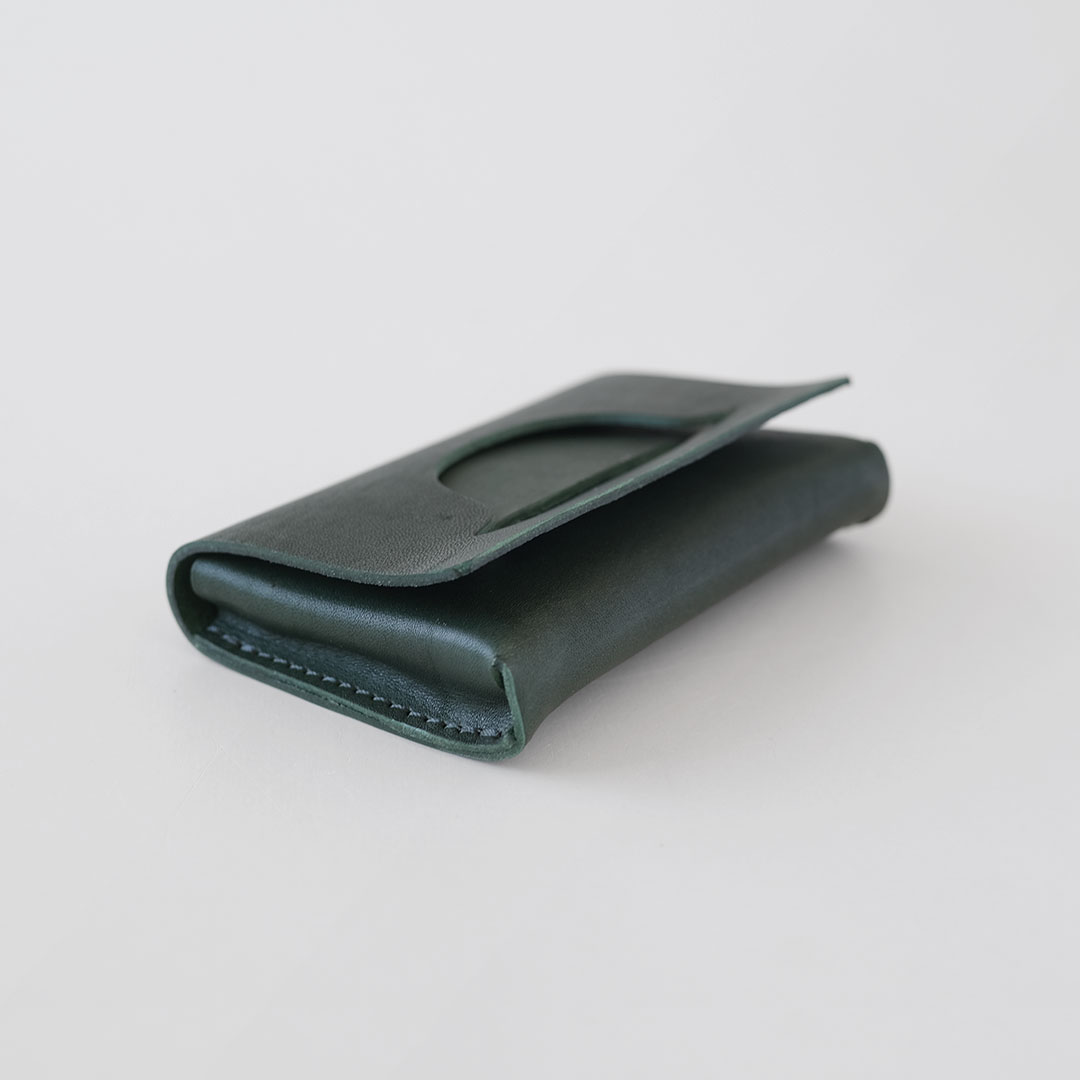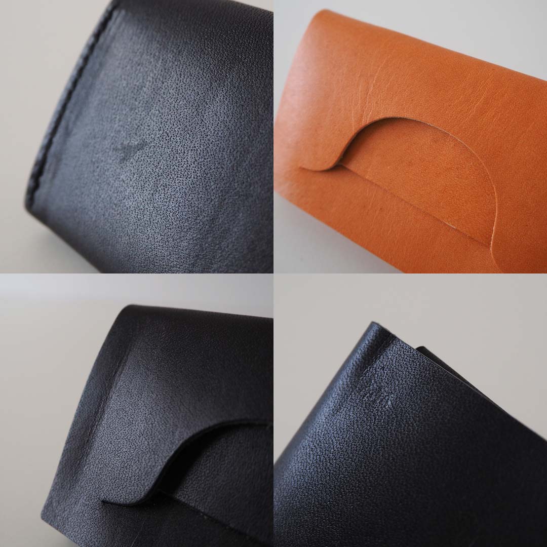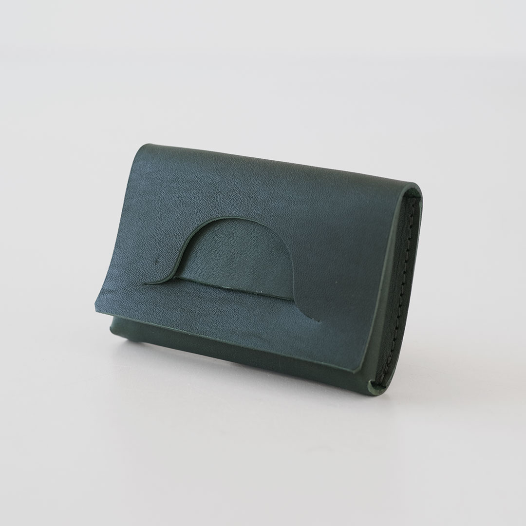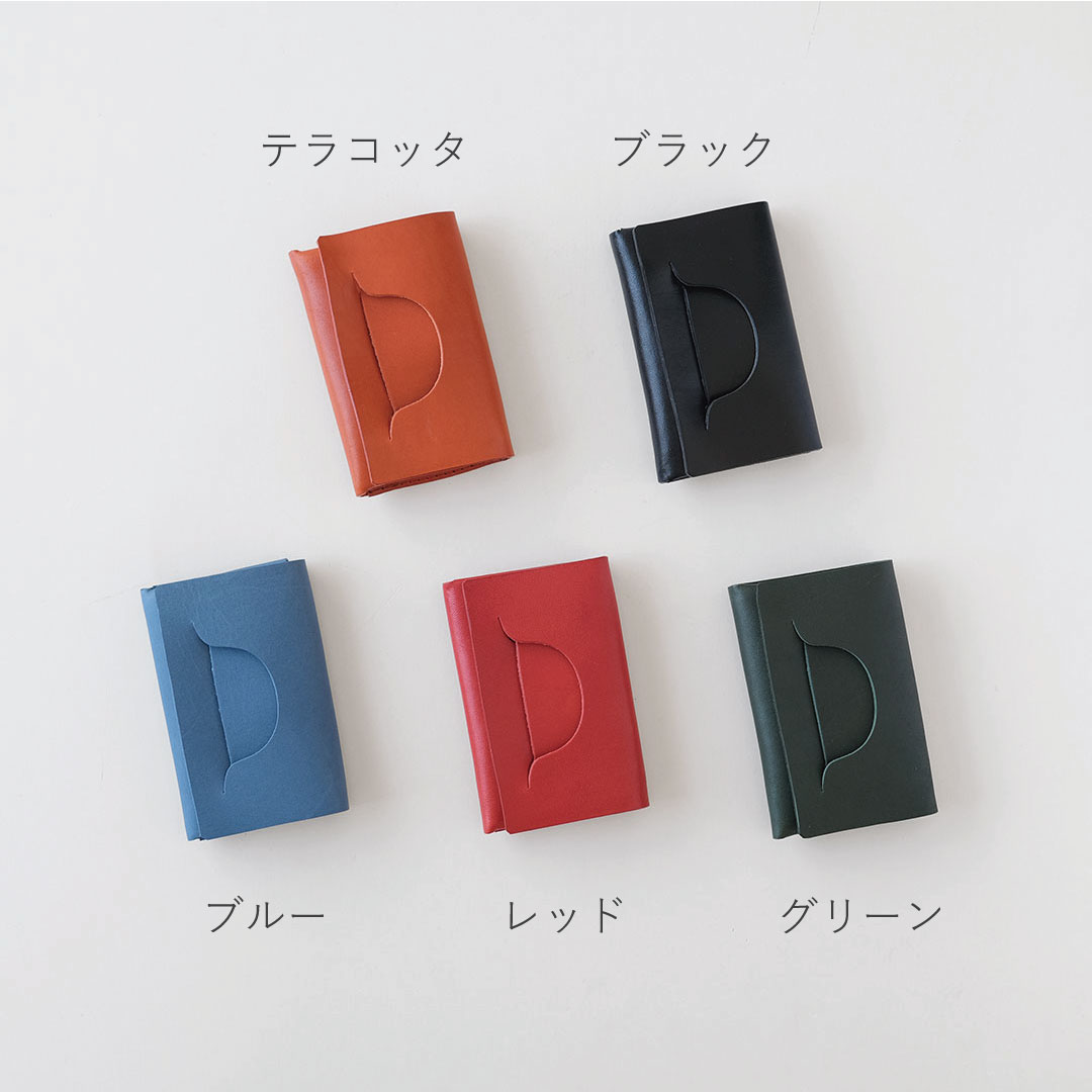 This business card holder is made from a single piece of leather, crafted in a three-dimensional yet simple manner.