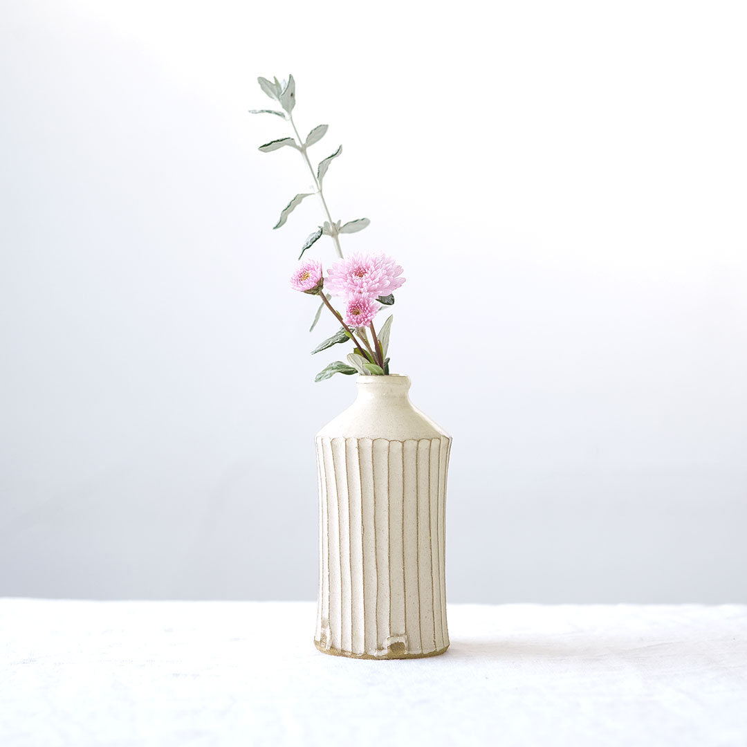 The soft colors and texture, inspired by the earth, are characteristic of Koma Kiln's white porcelain.
