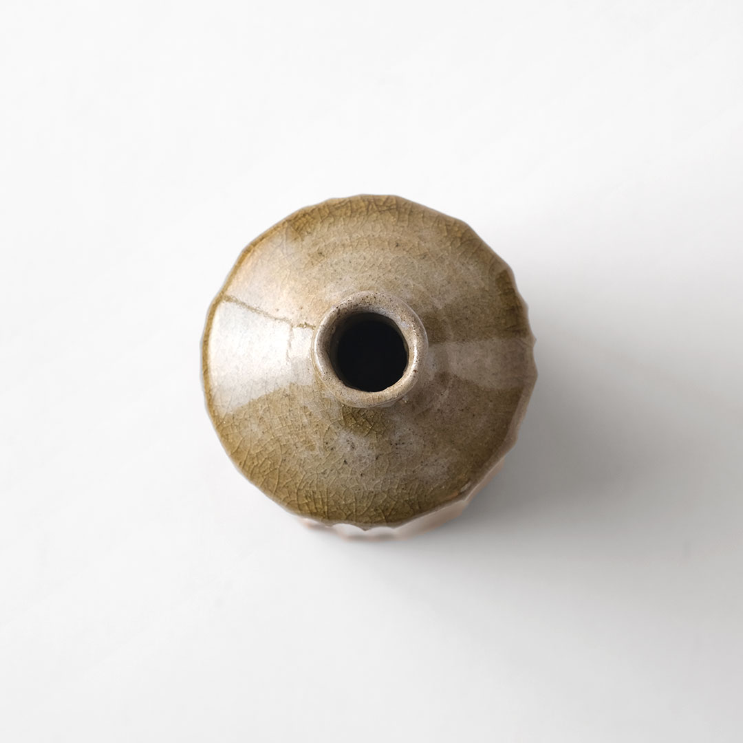 This single flower vase showcases a calming yellow-brown color that is appealing.