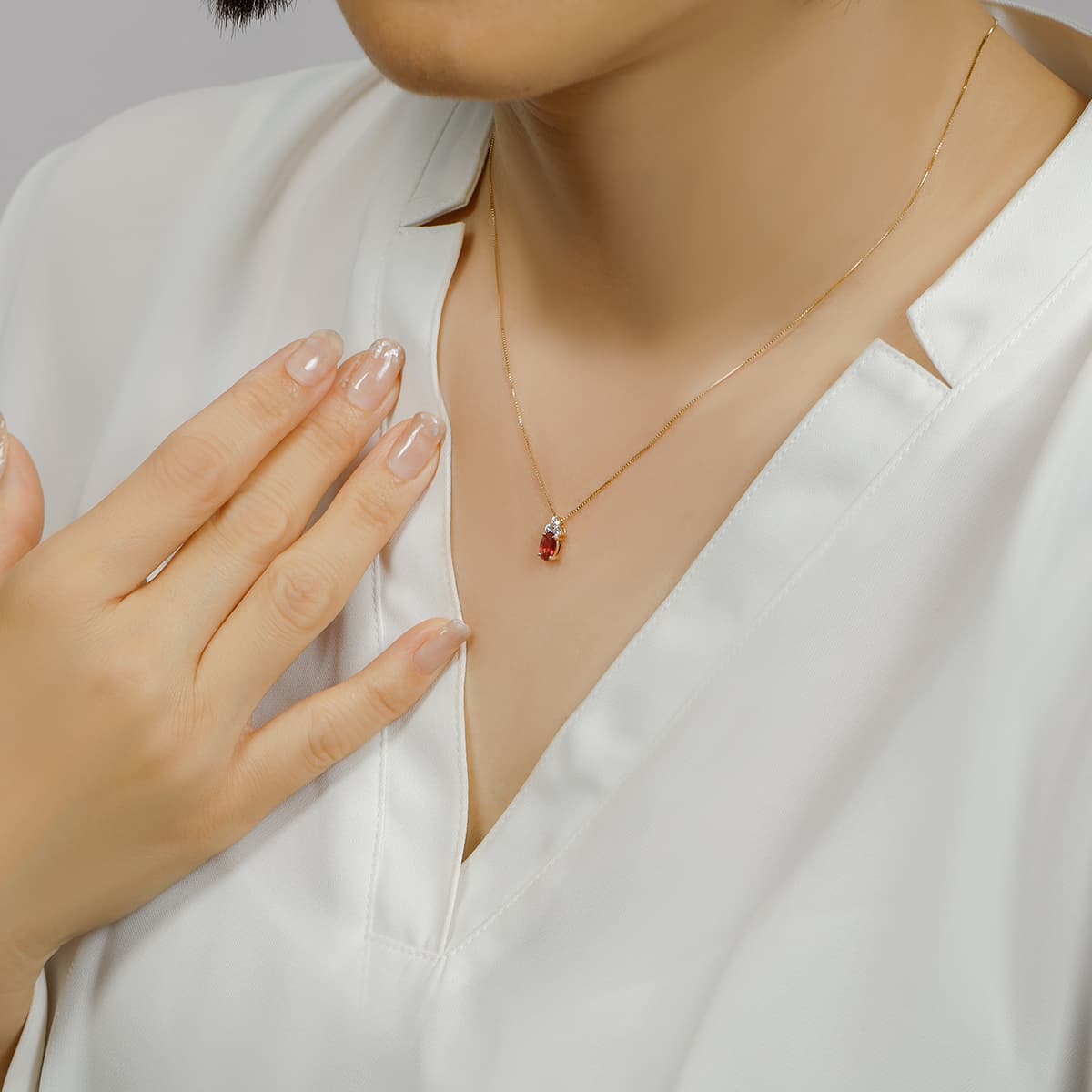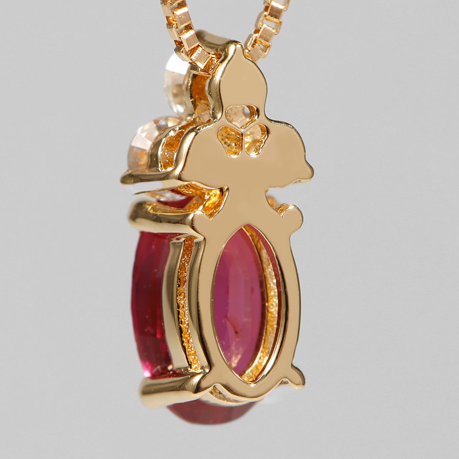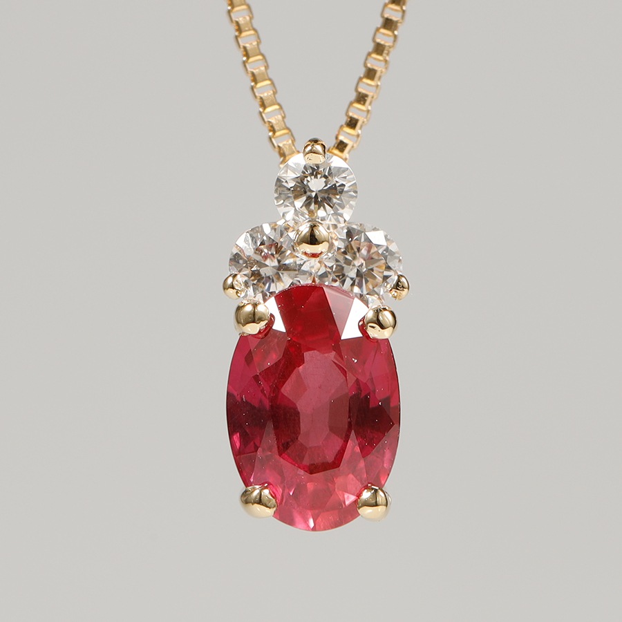 | Gemstones | Natural unheated pigeon blood ruby 0.50ct UP (1 pc) Natural diamonds 0.10ct (3 pcs) |