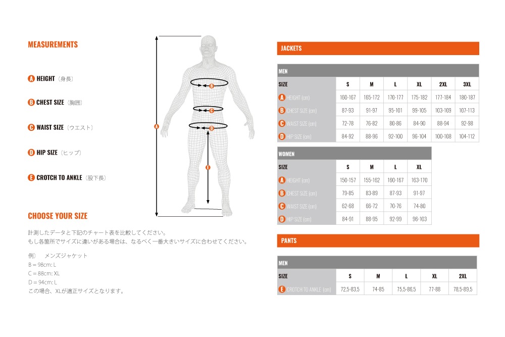 All IXON jackets adopt Asia Fit, tailored to fit the body shape of Japanese individuals, with an appropriate sizing and placement of protection, as well as compatibility for chest protectors (sold separately).