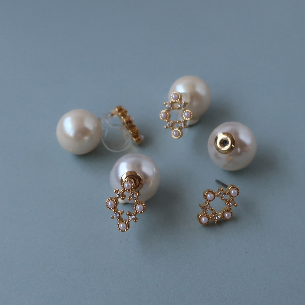 ■ Product Name: Arabesque Design Pearl Back Earrings / Clip-ons (4F)