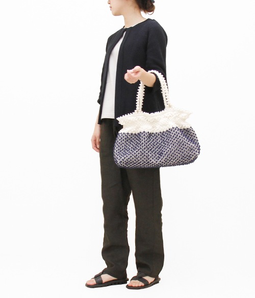 Antonello is a British bag label created by Antonello Ted, rooted in Sardinia, Italy. The materials used are traditional handwoven fabrics from Sardinia, crafted by the island's women using recycled cotton and organic wool from locally tended sheep. The charm of Antonello's bags lies in their exquisite representation of traditional craftsmanship in styles that resonate with modern sensibilities. Continuously seeking new expressions while enjoying tradition, Antonello has gained global attention as a premium eco-conscious bag brand. This is a horizontally elongated cotton-linen tote bag. The form, finished with a weaving technique, is impressive and has a strong presence. Its size is just right—not too big, not too small—making it easy to incorporate into your daily wear without feeling out of place. It's a bag that adds a sharp accent to your usual outfits. *Due to the handmade nature of the woven product, there may be slight variations in size.* --- | Material | | |-------------------------------|----------------------------------| | Main Fabric | Linen 50% / Cotton 50% | | Pocket Fabric | Cotton 100% | | Origin | Made in Italy | --- | Size | Height | Width | Depth | Handle | Weight | |-------------------------------|--------|-------|-------|--------|--------| | | 25cm | 40cm | 7cm | 47cm | 550g | *The opening is sized just right to accommodate B5 items.*