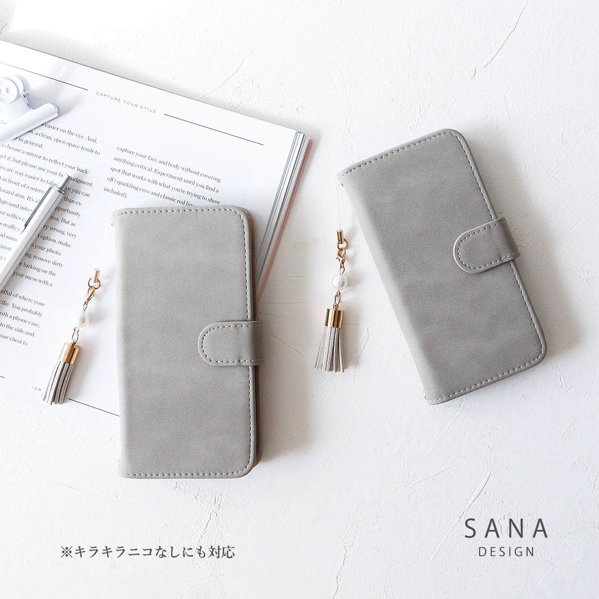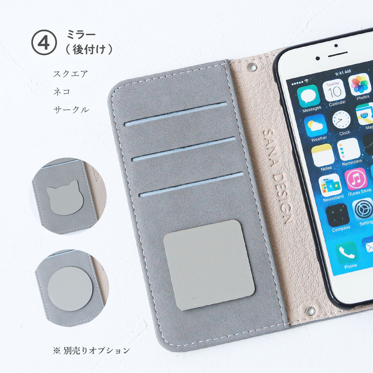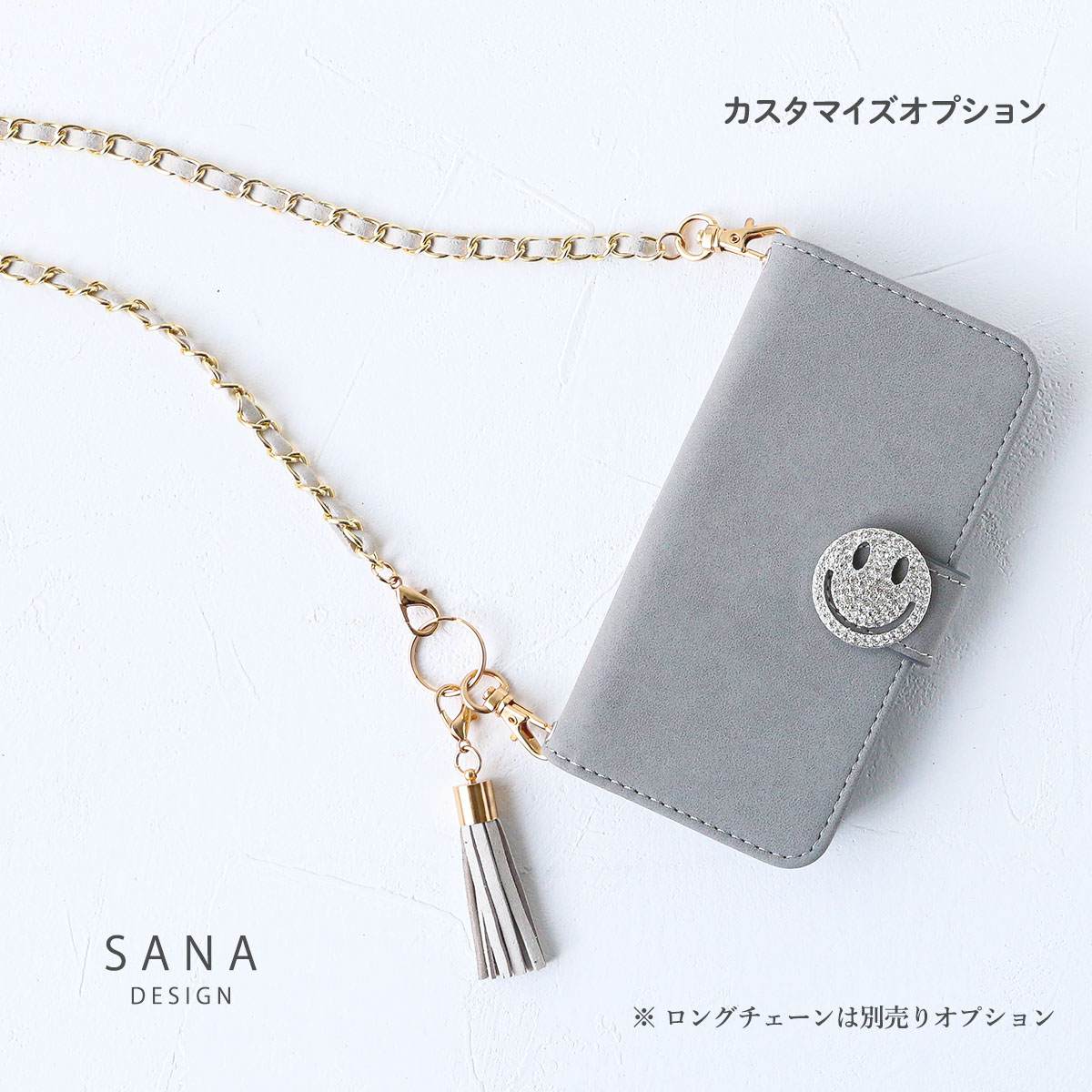 - ・ Slim Mirror Back Initial Case with Long Belt