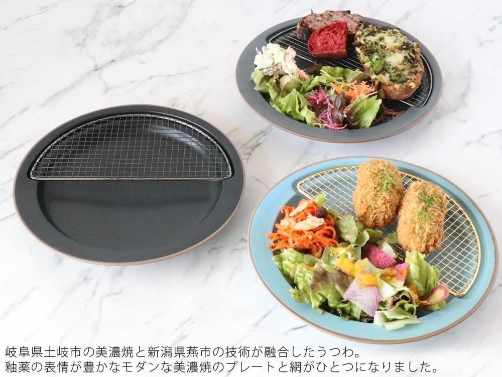 "With a half-moon mesh, you can enjoy both a crispy and juicy experience! Beautiful dishware that enhances your meals. [Made in Japan, Mino Ware, pottery, Tsubame Sanjo, stylish plate, dish, tonkatsu plate, gift]"
