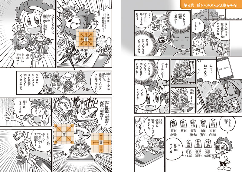 As you enjoy reading the manga, you’ll learn the basics of shogi, such as the types of pieces, how they move, and how to arrange them, as well as winning strategies, tactics, and effective ways to protect your king, making it the definitive introduction to children's shogi.