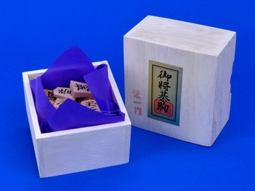 Shogi Piece Set by Eiichi, Boxwood, Black-engraved
