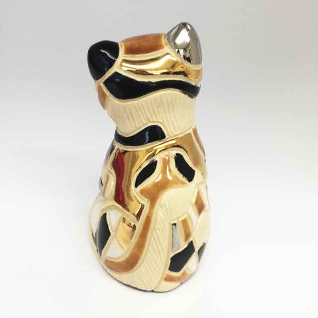This is a figurine of a "Calico Cat" from the 1997 "Silver Anniversary Collection," made during the Artesania Rinconada period.
